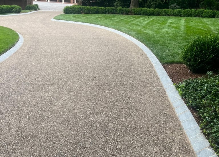 Handcrafted natural stone pathways bring charm. Durable and low-maintenance, concrete and stone surfaces can increase the value of a property. They are easy to customize and design to best suit your style, with various styles and finishes available. One of the key benefits of concrete and stone is their strength and durability. Concrete is especially robust and long-lasting, while stone is recognized for its inherent durability and resistance to wear and tear, ensuring that your investment withstands the test of time. Concrete and stone can be utilized in numerous applications, including patios and pathways, as well as retaining walls and decorative features.